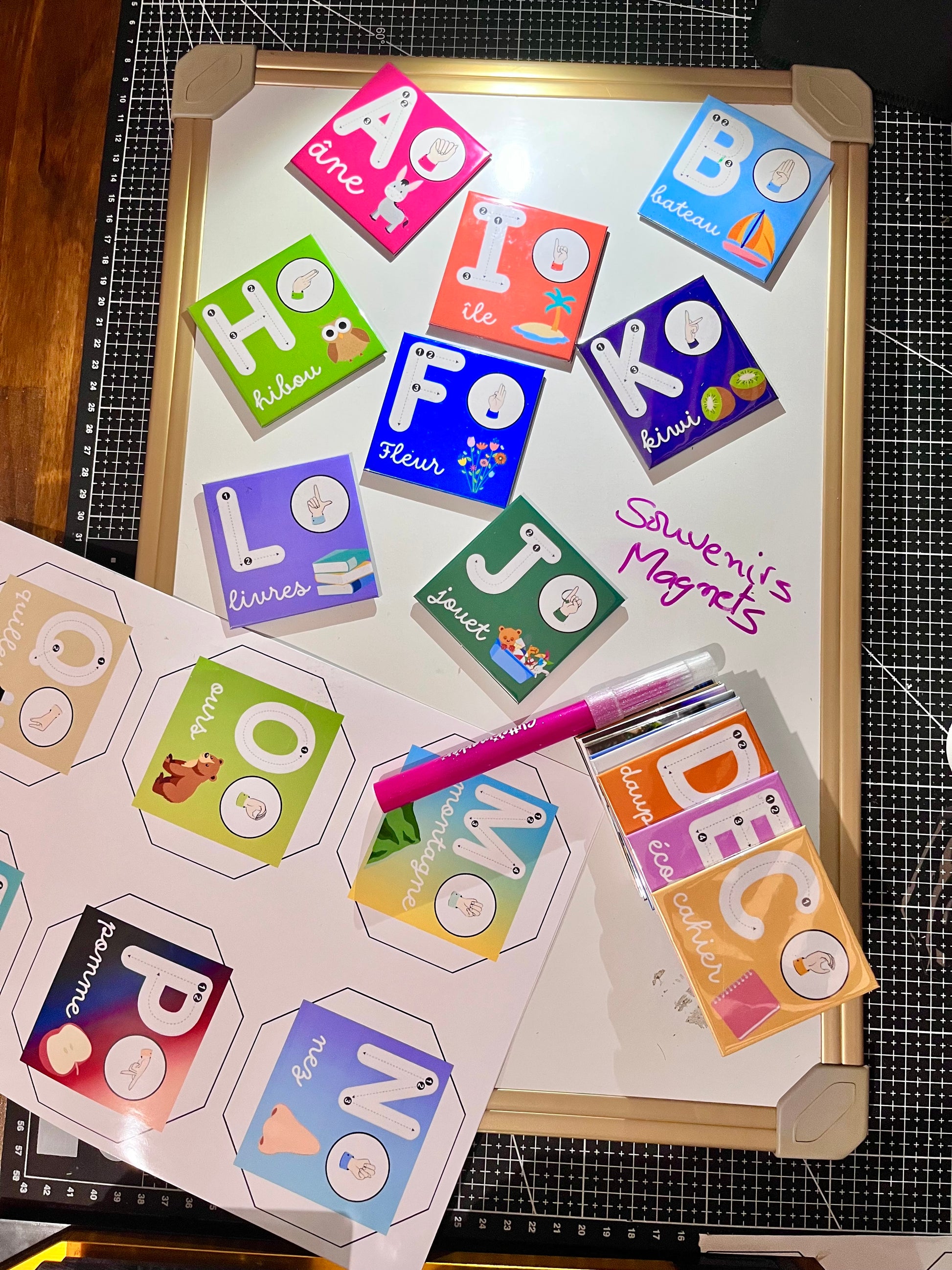 Découvrez notre set complet de 26 magnets alphabet, parfait pour apprendre les lettres de façon ludique et visuelle.